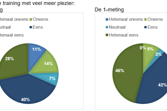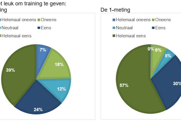 De diagrammen geven duidelijk weer dat het plezier van de trainer in alle gevallen is toegenomen. Door het technisch kader te begeleiden wordt het plezier vergroot