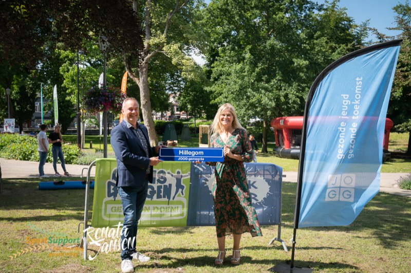 Op 2 juli 2022 heeft wethouder Jan van Rijn voorafgaand aan het ‘Sport- en beweegfestival Hillegom’ het JOGG-logobord in ontvangst genomen als tastbaar bewijs voor de samenwerking (zie foto).